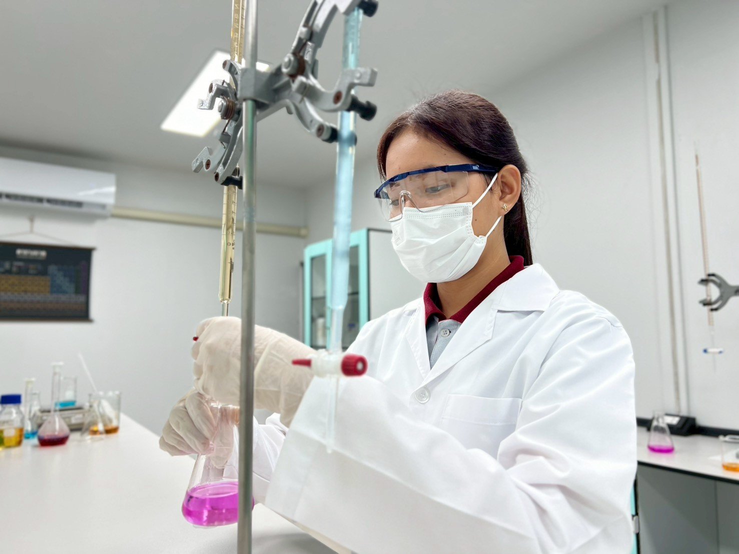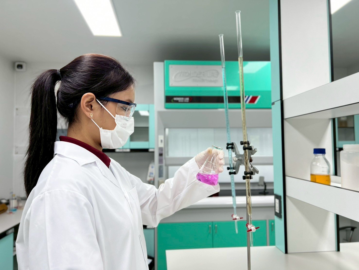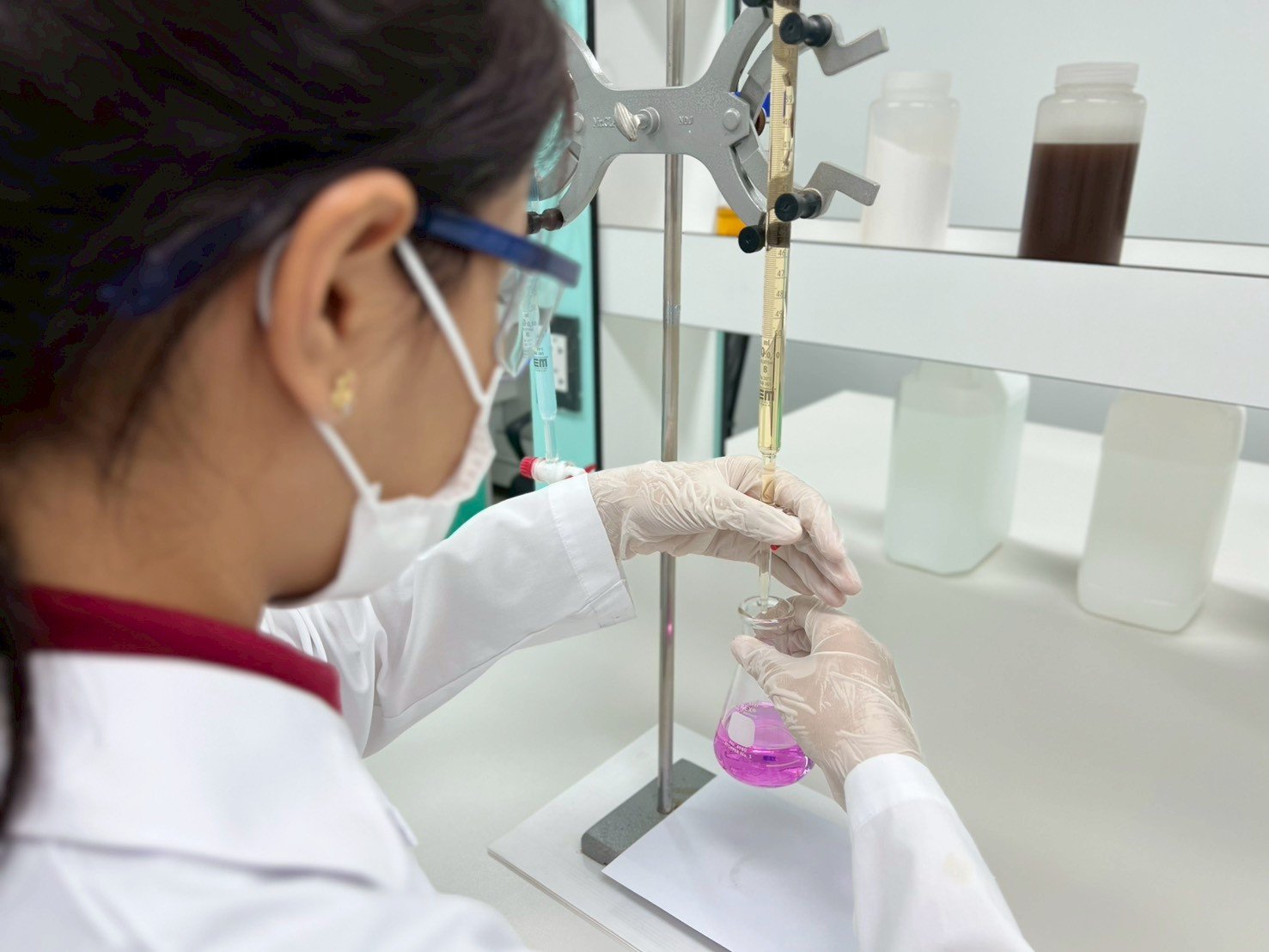 บริษัท แฮงเกอร์แมน ฟินนิชชิ่ง ซีสเท็มส์ จำกัด มีห้องปฏิบัติการเคมีที่ได้มาตรฐาน พร้อมด้วยอุปกรณ์และเครื่องมือวิเคราะห์ที่ใช้สำหรับการ ตรวจวิเคราะห์ วิจัย และพัฒนาคุณภาพของสารเคมี ที่ใช้ในกระบวนการผลิต ทั้งในด้าน คุณภาพเชิงวิเคราะห์ (Qualitative Analysis) เพื่อระบุชนิดของสาร และ ปริมาณเชิงวิเคราะห์ (Quantitative Analysis) เพื่อวัดค่าความเข้มข้นหรือปริมาณของสารได้อย่างแม่นยำ โดยทีมนักเคมีผู้เชี่ยวชาญของเราทำหน้าที่ควบคุมตรวจสอบ และพัฒนาสูตรเคมี อย่างต่อเนื่อง เพื่อให้มั่นใจว่าสารเคมีทุกชนิดมีคุณภาพตรงตามมาตรฐานที่กำหนด นอกจากนี้ เรายังให้ความสำคัญกับการวิจัยและพัฒนาผลิตภัณฑ์ใหม่ๆ (R&D) เพื่อปรับปรุงคุณสมบัติของสารเคมีให้มีประสิทธิภาพสูงขึ้นและเหมาะสมกับการใช้งานในแต่ละกระบวนการ เพื่อตอบโจทย์ความต้องการของลูกค้าได้อย่างตรงจุด และช่วยยกระดับคุณภาพของกระบวนการผลิตให้ดียิ่งขึ้น